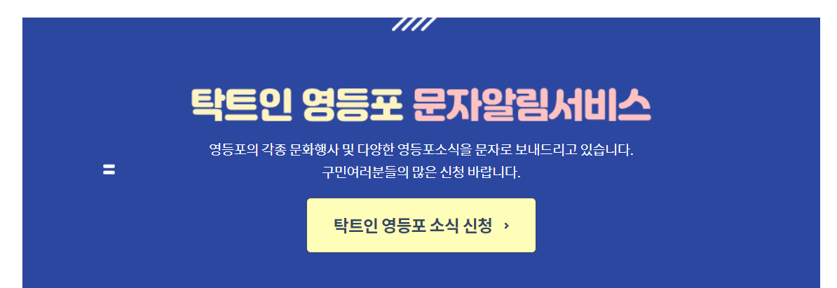 영등포구에 대한 소식을 빠르게 받고 싶은 분들은 소식신청을 하면 문자로 알림을 바로 받을 수 있습니다.
